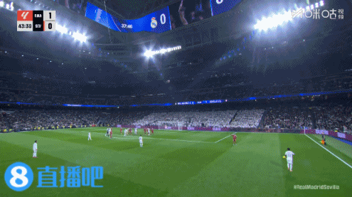 皇马半场1-0塞维利亚数据:射门8-4,射正2-0,控球率57%-43%